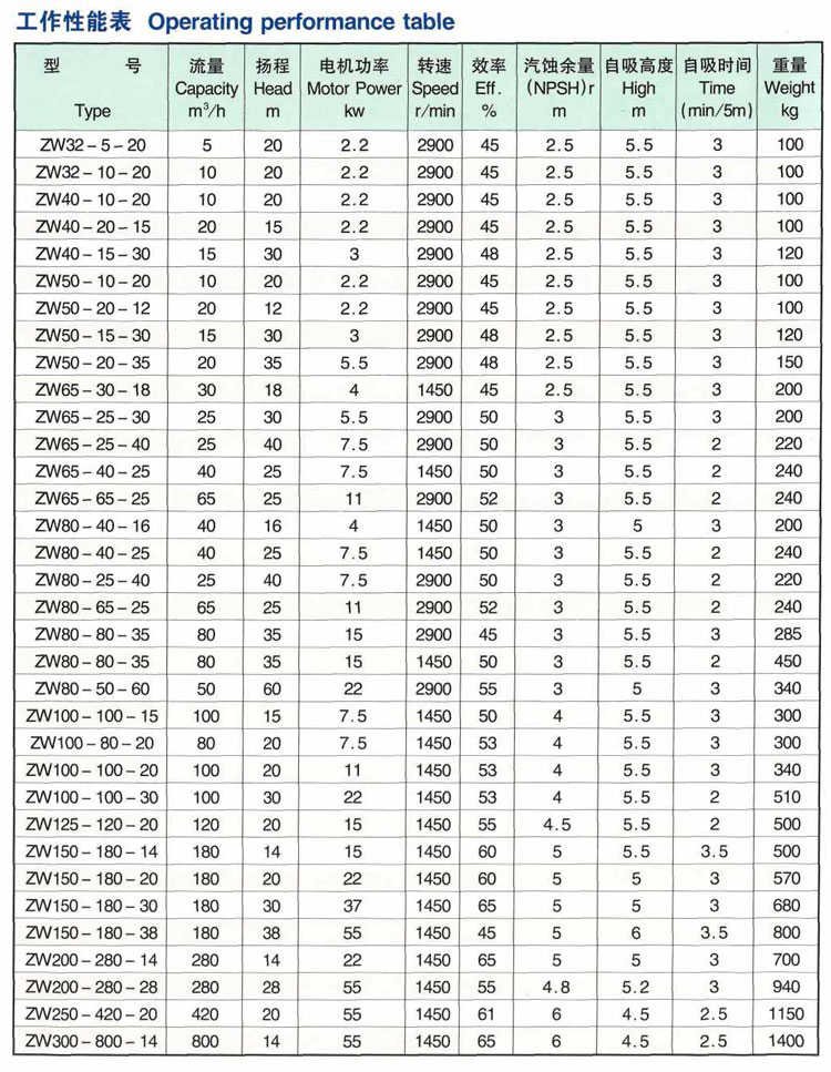 zw系列自吸式無堵塞排污泵用于輸送含有固體顆粒、纖維、漿料和混合懸浮介質的理想臥式雜質栗。