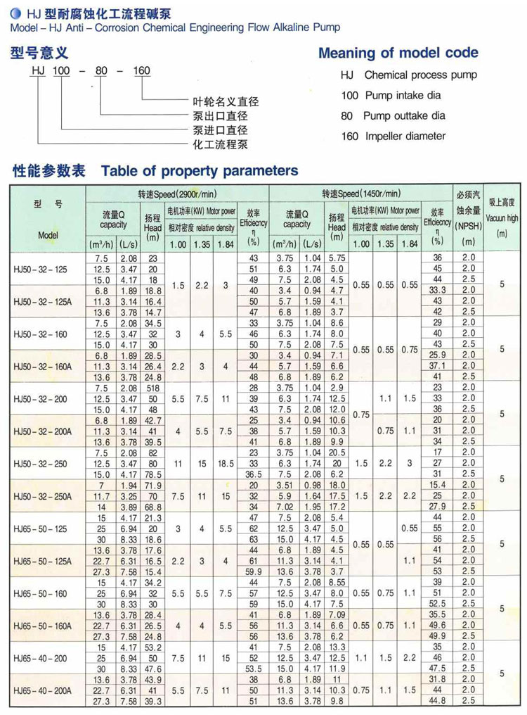 HJ型單級單吸懸臂式化工流程堿泵是在IH系列泵的基礎(chǔ)上,參照國外技術(shù)并結(jié)合用戶實際使用后而優(yōu)化設(shè)計的新產(chǎn)品,其額定性能和安裝尺寸符合!502858標(biāo)準(zhǔn),制造技術(shù)條件符合!505199標(biāo)準(zhǔn),主要適用于化工流程中含固量小于5O%之內(nèi)的漿液以及含結(jié)晶雜質(zhì)介質(zhì)的輸送。與lH泵相比,